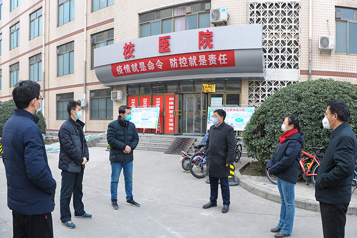 2月2日上午,校纪委书记陈自录深入校医院、学生处、国际教育学院、后勤处、保卫处等学校疫情防控工作领导小组成员单位,看望慰问坚守岗位的一线工作人员,检查督导学校防控工作落实情况。