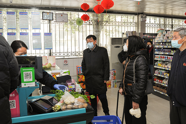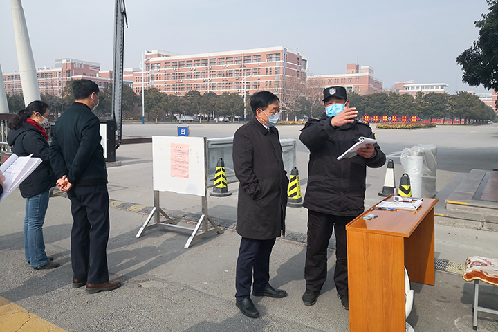 在校医院,陈自录详细了解了学校当前师生疫情防治的总体情况以及医用口罩、消毒药品等疫情防控物资的储备情况,要求校医院作为学校疫情网络直报单位,要进一步站位全局、强化担当,工作前置、主动作为,充分发挥专业优势,及时分析研判,助推学校疫情防治工作进一步落实落细。在学生处和国际教育学院,陈自录详细询问了当前学生疫情防控各项措施的落实情况,并对工作中遇到的困难和问题进行及时指导。在家东超市,陈自录查看了米面粮油、蔬菜等生活必需品的供应情况,叮嘱相关部门要扎实做好生活物资保障工作,为广大教职员工解除后顾之忧。在学校西二门、南门和中华翰苑小区北门,陈自录亲身体验了进出人员登记管理、体温监测等各项管理措施,强调要扎实做好返校教师特别是自湖北等疫情严重地区返校教师的登记管理与隔离观察工作。