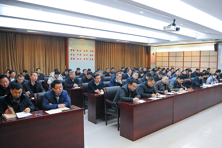 校党委书记邹友峰发表讲话。他充分肯定了过去一年全校师生为学校事业发展付出的辛勤努力,并代表校党委、行政向大家作出的突出贡献,表示衷心感谢。邹友峰着重围绕“省委巡视反馈意见整改见底清零”“‘不忘初心、牢记使命’主题教育走深走实”“党建工作高质量推进”“事业发展内涵式提升”“建校110周年活动汇聚发展合力”五个方面,全面总结了学校2019年度工作和取得的成绩。他强调,要辩证看待工作成绩。既要看到进步和发展,还要看到存在的不足和差距,更要从中寻找、抢抓下一步发展机遇。要正确看待考核结果。既要通过考核结果来查找问题、总结不足,创造性地开展工作;同时要统筹考虑,公开透明,用好分配杠杆,做好校内绩效分配工作。