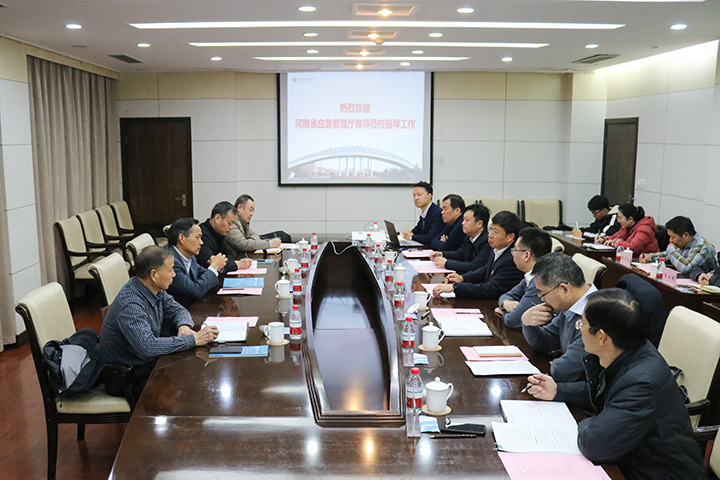 12月27日上午,河南省应急管理厅副厅长李长训等一行四人莅校调研。学校在行政楼二楼会议室召开座谈会,校长杨小林、副校长赵同谦出席。省应急管理厅宣传训练处、人事处、规划处相关负责同志陪同调研。座谈会由赵同谦主持。