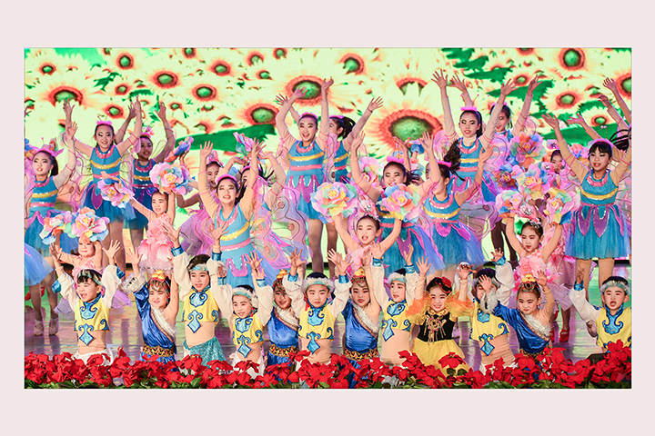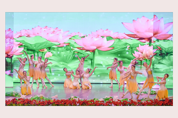 理工教育中心的小朋友们表演《花儿朵朵开》