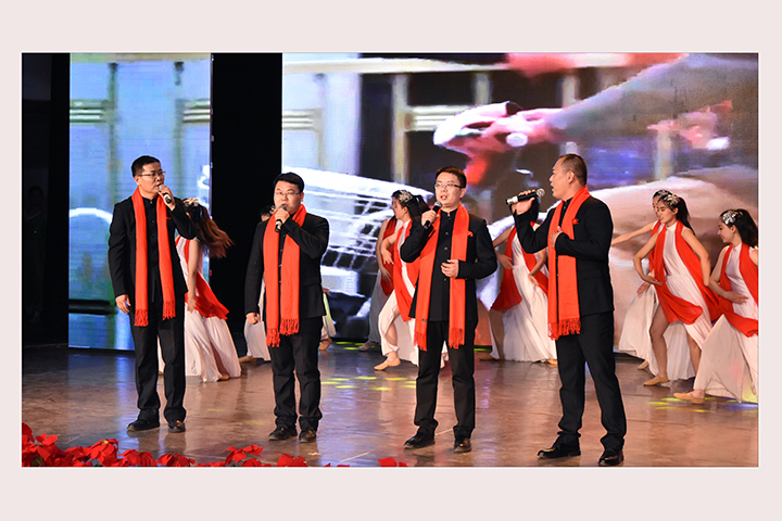 联欢会在歌伴舞《看山看水看中国》中拉开帷幕。理工教育中心的小朋友们带来了《花儿朵朵开》,在这欢庆的夜晚带给我们童真童趣。领跑者舞团的《哪吒》舞动青春,炸裂全场。歌曲联唱《东方红》、《时代号子》、《我和我的祖国》等,展示了时代的发展,历史的变迁,站在今天,回顾昨天,展望明天,我们唯有不忘初心,才能牢记使命,开创未来。观众跟着节奏挥动手中的国旗,联欢会在激昂的歌声中走向高潮。七十年,我们在前进路上奋力奔跑,越过了无数激流险滩,相声《砥砺奋进七十年》带我们回顾了伟大祖国七十年来的沧桑巨变。歌伴舞《中国》歌颂美丽祖国,鼓励大家为梦前行,为梦拼搏,为理想耕种。《莲颂》用柔美动人的舞蹈展示了理工人出淤泥而不染,濯清涟而不妖的君子精神,展示了在祖国的四面八方建功立业,中通外直,不蔓不枝的理工风采。朗诵《我们的2019》带我们回顾了2019,回顾了祖国快速腾飞的七十年,回顾了理工砥砺前行的百年历史,激励我们不忘初心,继续前进,奋力建设国内一流特色高水平大学。充满青春气息的歌舞《超越自我》,鞭策理工学子爱读书,善表达,在践行学风建设的道路上不断奋进。电光舞《悟空传》,通过光与电的视觉盛宴,带我们感受心灵与成长的碰撞,从美猴王到齐天大圣,从齐天大圣到至尊宝,我们在追梦路上悄无声息的成长、蜕变。中华武术,博大精深《武动理工》一招一式尽显理工学子青春朝气,博得了现场观众热烈地喝彩,掌声经久不息。最终,晚会在优美的歌伴舞《不忘初心》中落下了帷幕。晚会融合了舞蹈、相声、武术、合唱、独唱等丰富多彩的节目形式,为大家献上一场美妙绝伦、精彩纷呈的视听盛宴。