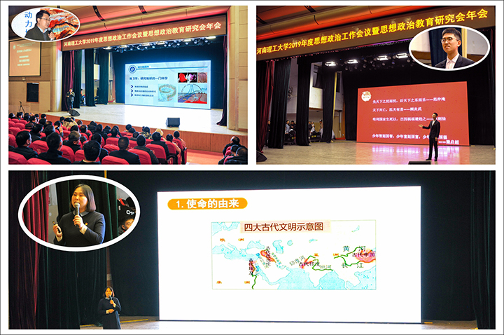 会上,马克思主义学院和资环学院的教师分别作思政课教学展示和课程思政教学展示,电气学院学生作青年学生理论宣讲展示,音乐学院和体育学院的师生以歌曲、武术和舞蹈等形式作文化育人成果展示。