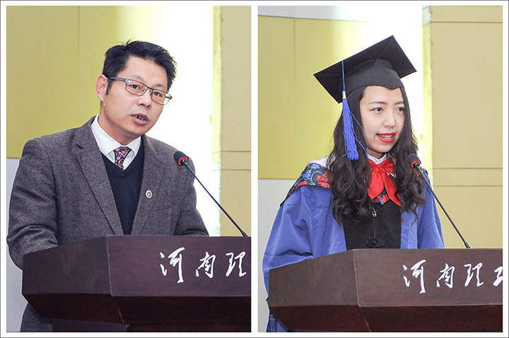 导师代表、安全学院教授魏建平对研究生们顺利毕业表示祝贺,并祝愿研究生们前程似锦。毕业研究生代表、文法学院硕士研究生陈潇向母校表达了诚挚的谢意,并表示将铭记校风校训,砥砺前行。
