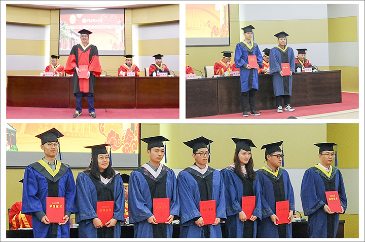 副校长赵同谦宣读文件并为硕士毕业生拨流苏,颁发学位证