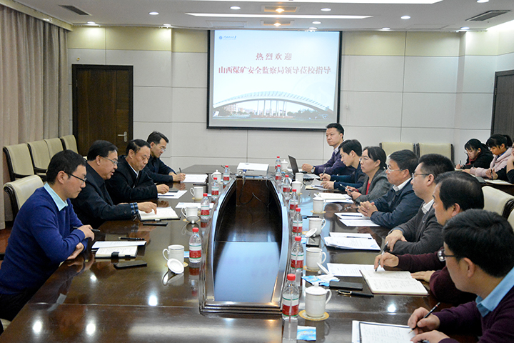 12月16日下午,山西煤监局党组书记、局长卜昌森,河南省政协经济委员会副主任陈党义一行莅校交流。学校在行政楼二楼会议室召开交流座谈会,校长杨小林、副校长赵同谦出席会议。会议由赵同谦主持。