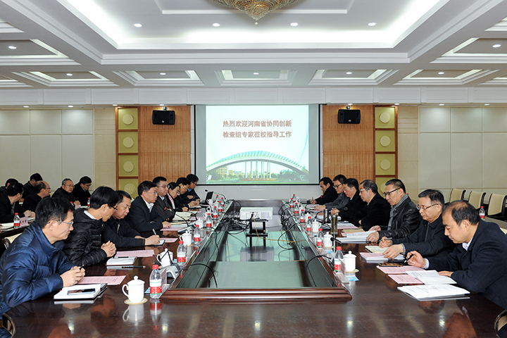 11月26日,由河南科技大学原副校长谢敬佩任组长,河南中医药大学副校长李建生、安阳工学院校长景国勋为副组长的河南省协同创新中心中期检查专家组一行7人莅临学校,对我校牵头建设的“煤炭安全生产河南省协同创新中心”进行中期检查和实地调研。学校在力行楼方形会议室举行汇报会,校长杨小林、副校长赵同谦出席会议,科技处、发规处、财务处、实验室处、研究生处、教务处等相关职能部门负责人、协同创新中心团队负责人及学术骨干共40余人参加会议。会议由河南省教育厅协同创新管理办公室魏涛主持。