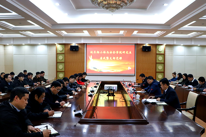 11月29日下午,校长杨小林在力行楼一楼会议室讲授“学习贯彻党的十九届四中全会精神”专题党课。校长办公室党支部和安全学院研究生党支部近50名党员共同参加。