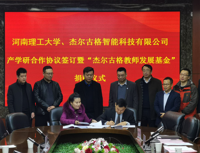 11月27日上午,机械学院在该院217会议室举办了河南理工大学、杰尔古格智能科技有限公司产学研合作协议签订暨“杰尔古格教师发展基金”捐赠仪式。学校副校长赵同谦,杰尔古格智能科技有限公司董事长李俊华、总经理张琰瑞出席仪式。校友与社会合作办、教务处、科技处负责人,杰尔古格智能科技有限公司相关负责人,机械学院部分教师参加了捐赠仪式。仪式由该院副院长明平美主持。