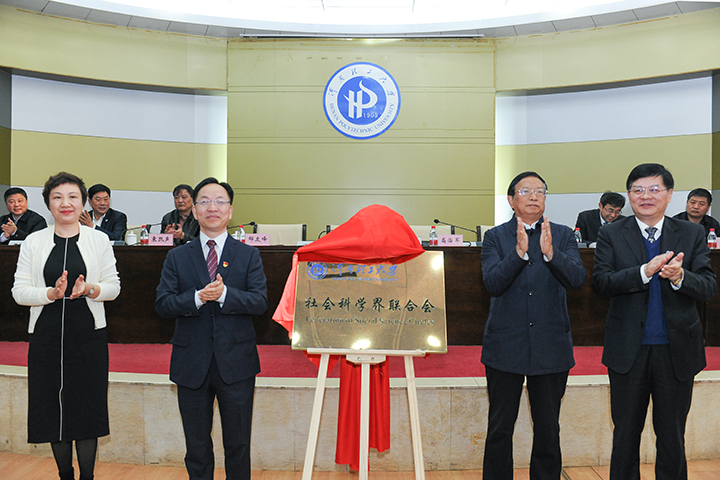 会上,高治军、李庚香、苗树群和邹友峰为“河南理工大学社会科学界联合会”揭牌。