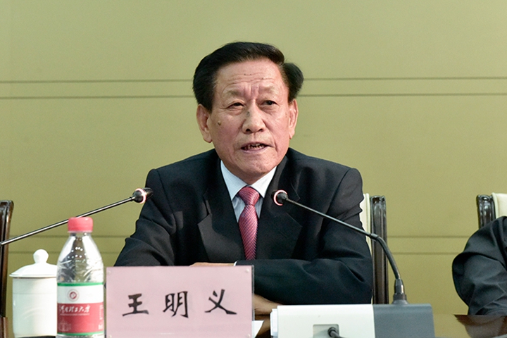 校友会会长、河南省原常务副省长、党组副书记王明义发表讲话