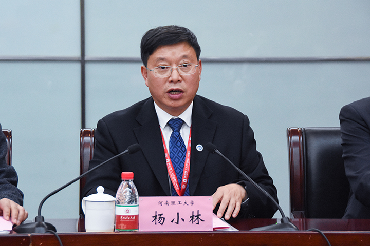 10月19日下午,学校理事会第四届会员代表大会在明德楼一楼会议室召开。河南省人民政府原省长助理、第三届理事会理事长卢大伟,原副校长、第三届理事会秘书长王裕清,校党委书记邹友峰、校长杨小林、副校长赵俊伟,以及各理事单位的领导出席。会议由杨小林主持。