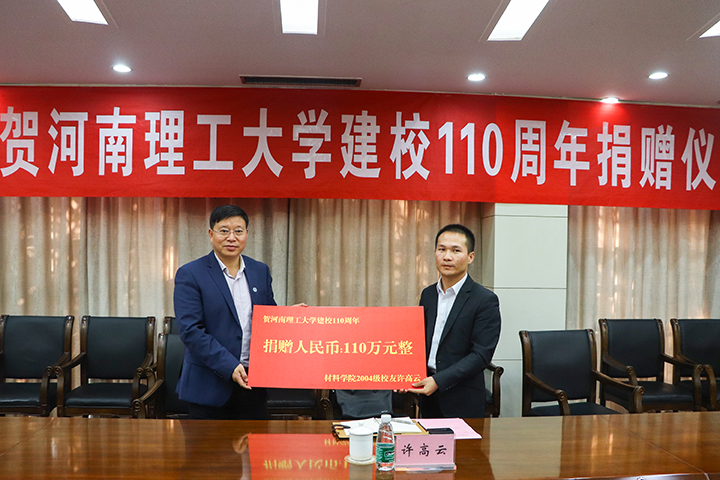 10月18日下午,我校于行政楼一楼会议室举行鸿华科技有限公司研究生奖学金捐赠仪式。鸿华科技有限公司为学校捐赠110万元,校长杨小林代表学校接受捐赠,鸿华科技有限公司总经理许高云,研究生院、材料学院、电气学院、化工学院、能源学院、安全学院、机械学院等相关单位负责人参加了此次捐赠仪式。会议由校友与社会合作办公室主任邵强主持。