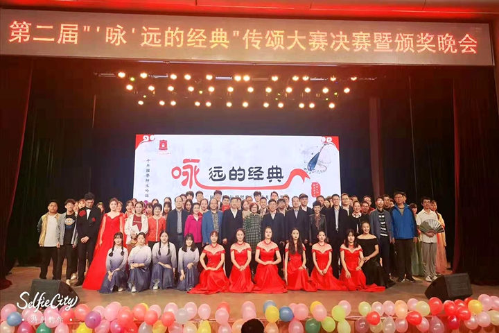 10月13日晚,由图书馆、校团委、音乐学院、文法学院主办,大学生新曦文友协会、大学生时代潮文学社承办的第二届“‘咏’远的经典”传颂大赛决赛暨颁奖晚会在南校区小礼堂举行。副校长赵俊伟出席,马克思学院院长郑小九、文法学院院长冒建华,图书馆党总支书记袁方、馆长海林鹏以及图书馆、校团委、音乐学院、文法学院等单位相关负责人参加晚会并担任评委,800余名师生共同观看了比赛。