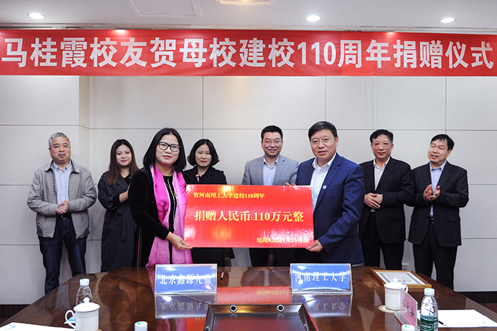 10月10日上午,学校在行政楼一楼会议室举行马桂霞校友110万元捐赠仪式,校长杨小林,副校长赵同谦,地勘82级校友、北京鑫源九鼎科技有限公司董事长马桂霞出席仪式。仪式由赵同谦主持。
