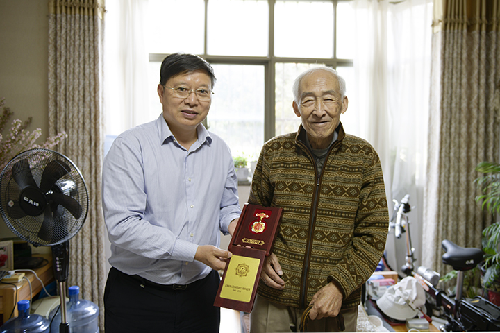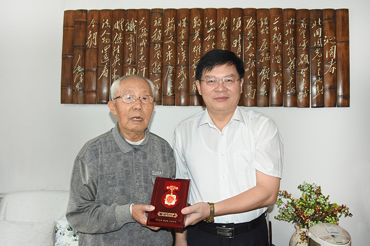在中华人民共和国成立70周年之际,校党委书记邹友峰、校长杨小林、副校长解伟受河南省教育厅委托,在党办、人事处负责同志陪同下,专程到王景伦、葛宝勋、王效增等老同志家中走访慰问,为他们送上“庆祝中华人民共和国成立70周年”纪念章和鲜花。