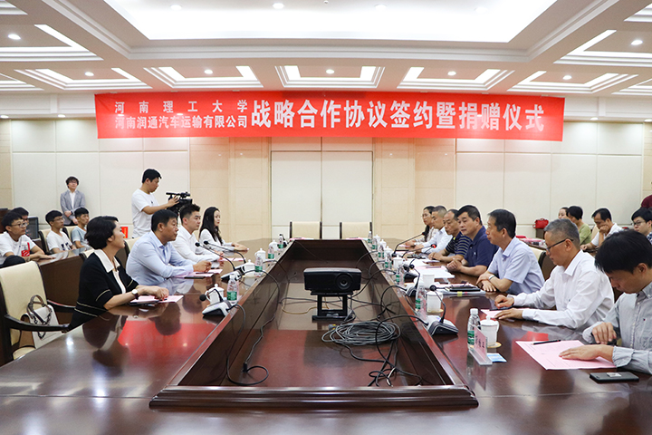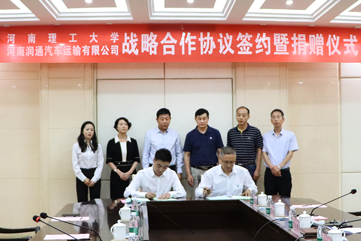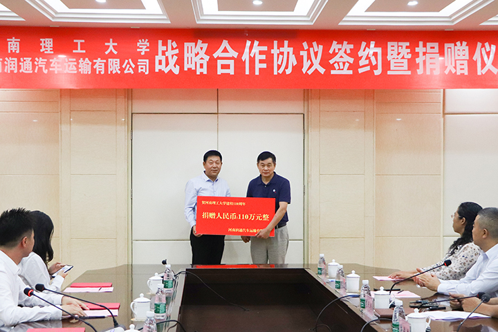 李军启表示,河南润通汽车运输公司一直秉承立足社会、服务社会的旗号,润通公司除了在传统运输领域扎实稳进,还在智慧物流、物流大数据、无车承运平台等信息化技术方面有所涉及,河南理工大学计算机学院的师生团队的素养及能力对企业今后的发展有巨大的帮助。他希望以此捐助,助力我校优秀学子在激烈的竞争中,勇立潮头,希望双方在合作协议的指导下,在协同育人方面展开深入合作,实现共同发展。