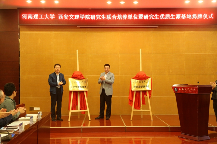 9月17日上午,我校与西安文理学院研究生联合培养单位暨研究生优质生源基地揭牌仪式在西安文理学院隆重举行。我校副校长赵同谦出席,研究生院、材料科学与工程学院、机械与动力工程学院、电气工程与自动化学院负责人,及材料科学与工程学科导师代表等一行6人,西安文理学院副校长韩权、教务处、科研处、机械与材料工程学院、信息工程学院、化学工程学院、生物与环境工程学院负责人参加了揭牌仪式。仪式由西安文理学院学位与研究生管理处副处长钱晓萍主持。