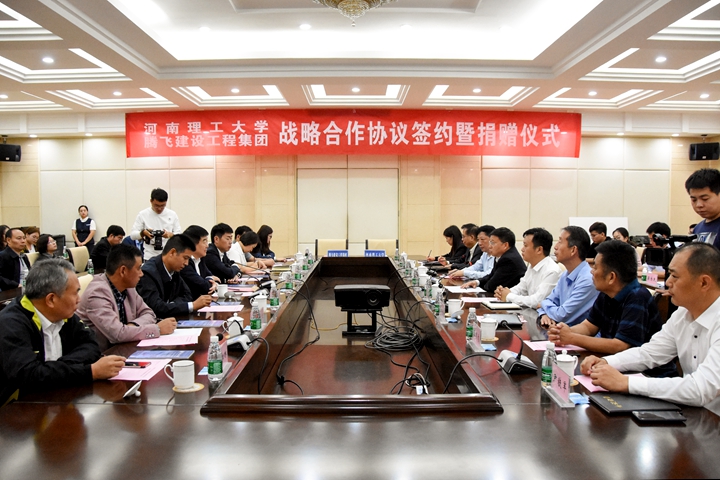 会议伊始,杨小林向腾飞集团的各位参会人员表达了热烈的欢迎,并向与会人员简要介绍了学校的发展历程、办学情况以及近年来所取得的一系列成就。他指出,河南理工大学作为中国矿业高等教育的发源地,长期以来始终坚持特色发展,在安全、矿业等领域取得了傲人的成绩,而土木作为我校的重要学科,同样有着自身独特的优势和良好的发展前景。他强调,在如今国家政策及市场环境的影响下,我校积极进行结构调整,不断加大与地市政府、企业的全方位合作。此次我校与腾飞建设工程集团有限公司签署战略合作协议,标志着校企双方合作将进一步深化,实现共赢。学校十分重视和支持土木学院与腾飞集团的合作,期待双方能够保持长期良好的合作关系。