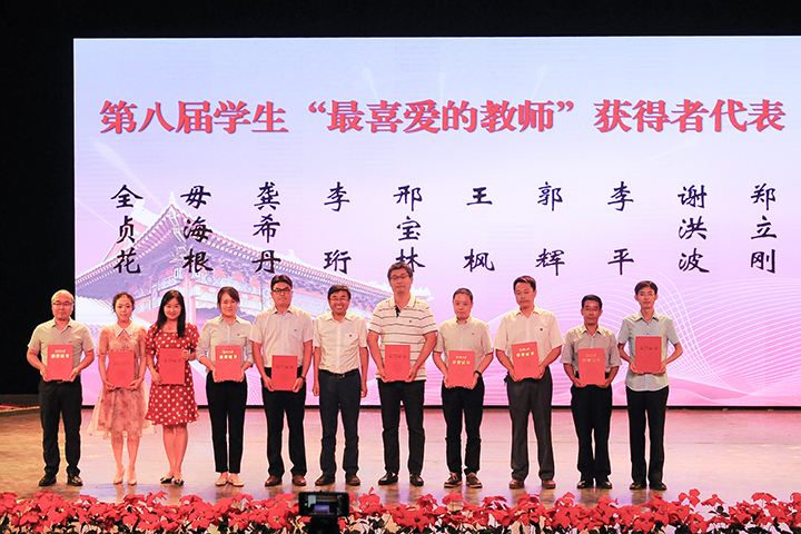 校党委副书记安士伟为“第八届学生最喜爱教师”代表颁奖