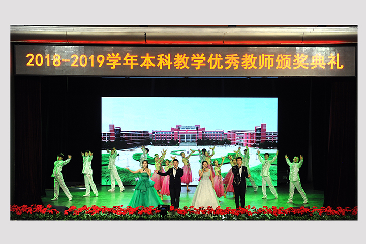 颁奖典礼在歌曲联唱《祝福》中拉开序幕,校领导为中原教学名师、第四批太行名师、第八届学生最喜爱的教师、2019年示范教师、2018年“三大杯”教学竞赛获奖等教师颁发荣誉证书。