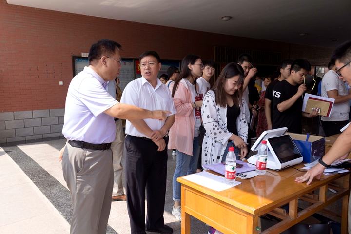 迎新期间,校长杨小林亲临现场视察指导迎新工作,并对全体迎新工作人员表示慰问。他先后到各学院迎新点、迎新服务台、迎新展板等处查看,并了解了新生报到相关流程和工作开展情况。在迎新点,杨小林认真听取了党委研工部部长、研究生院院长张国成关于迎新工作的汇报,详细了解新生报到进展。他叮嘱各位迎新人员和志愿者要增强服务意识,发扬奉献精神,按照程序把迎新工作做细、做实,要把热情、周道、便捷的服务送到新生和家长身边,确保每一位新生能够顺利报到入学,让他们感受到学校大家庭的关怀和温暖,让学生满意,让家长放心。在迎新现场,杨小林与正在办理入学报到手续的新生和家长亲切交谈,听取他们对学校工作的意见和建议,他鼓励新生尽快熟悉校园环境、早日适应研究生生活,勉励他们珍惜学习机会、专心科研,做努力奋进,勇担使命的新青年。