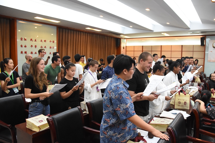 由孔子学院总部/国家汉办主办、河南省教育厅和我校承办的共建“一带一路”国家青年学生“汉语桥”夏令营(河南段)(以下简称“夏令营”)自8月8日正式开营后,开展了一系列内容丰富、形式多样的活动,包括学习体验太极拳、太极发源地寻根、吹奏黄河泥埙、学唱中国民歌等,使营员对中华文化、中原文化有了更加深入的了解。