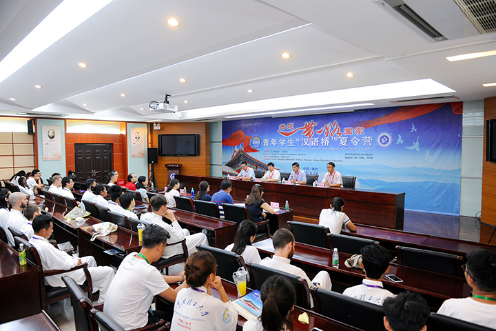 8月8日上午,共建“一带一路”国家青年学生“汉语桥”夏令营(河南段)开营仪式在我校明德楼的一楼会议室举行。河南省教育厅对外合作与交流处处长、省教育与汉语国际推广办公室主任徐恒振,我校副校长赵俊伟出席,来自19个共建“一带一路”国家的30名大学生,学校国际教育学院、国际处、体育学院、音乐学院和文法学院负责人参加开营仪式。仪式由国际教育学院院长王哲主持。