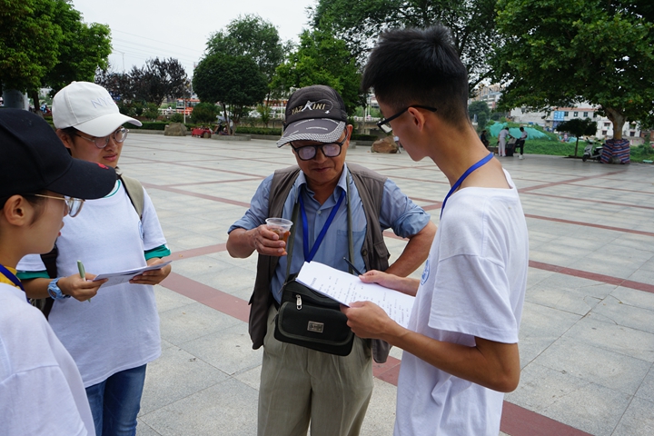 实践团队分成志愿服务小组和考察调研组。在志愿服务活动中,团队成员完成搬桌椅、烧水泡茶、搭帐篷、贴条幅等一系列准备工作后,一部分人外出为坚守在高温工作岗位上的交警和环卫工人送去茶水,另一部分人则留在帐篷为广场里的爷爷奶奶服务。交警同志对此次活动给予鼓励并希望实践队员们继续为基层工作者送爱心。他们对实践活动的肯定更坚定了队员们做好后续工作的决心。同一时间,调查组根据前期调研结果制定了本次调查问卷。在走访调查的过程中,调查组从最喜爱的茶类、优劣茶的辨别、毛尖的认识等方面进行调查。经调研发现,多数当地人认为茶叶只用于招待客人,对茶文化并不十分了解。根据调查结果,实践团队展开讨论研究,积极为传承信阳毛尖文化建言献策,为下一步的实践活动做好准备。