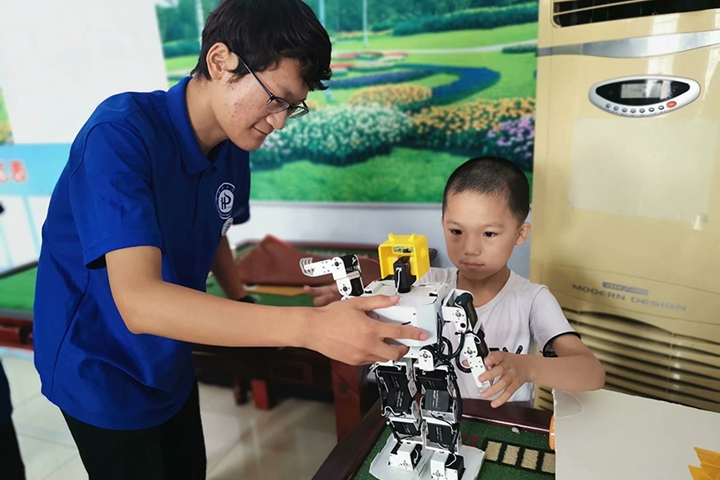 为宣传科技精神,传递创新乐趣,7月19日,物电学院“扬科技精神,享创新乐趣”科技宣讲社会实践团队来到焦作市耿作村进行科技宣讲活动,为孩子们展示机器人、四旋翼、智能车等科技作品。