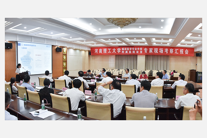 我校在力行楼一楼会议室召开医学院临床医学本科专业设置及附属医院设立审核评估会。专家组组长、新乡医学院原副校长郭志坤,专家组成员:郑州大学临床医学院院长、第一附属医院副院长赵松、河南大学医学院副院长任学群、郑州大学教授刘桂萍出席会议。校党委书记邹友峰致欢迎词。副校长赵俊伟主持会议。医学院、焦作市第二人民医院和学校相关职能部门负责人列席会议。
