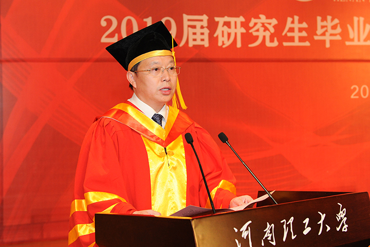 杨小林发表致辞,他代表我校向圆满完成学业的17名博士研究生、603名硕士研究生表示热烈的祝贺。他回顾了我校研究生工作近年来取得的长足进步,充分肯定了本届毕业研究生在高水平论文发表、学术交流、学术竞赛等方面取得的可喜成绩。杨小林对即将踏上人生新征程的毕业研究生们提出了三点希望:一是以坚定的理想信念永葆初心。希望同学们志存高远,把坚定理想信念作为人生的第一修行、第一动力,面对风浪考验无所畏惧,面对困难挑战绝不退缩,肩负起民族复兴的时代重任。二是以昂扬的奋斗姿态担当使命。希望同学们保持勇于奋斗的精神状态,练就善于担当的过硬本领,始终将个人发展融入社会历史发展的洪流,在担当时代重任的进程中释放青春激情。三是以强烈的创新精神实现价值。希望同学们秉持“敢为天下先”的创新意识和创新思维,争做敢于创新、善于创新、享受创新的先锋,在建设创新型国家的征程中实现人生价值。他叮嘱毕业研究生们进入社会以后继续做一个勤劳勇敢、务实进取、正直善良、懂得感恩、有责任担当的社会主义接班人。