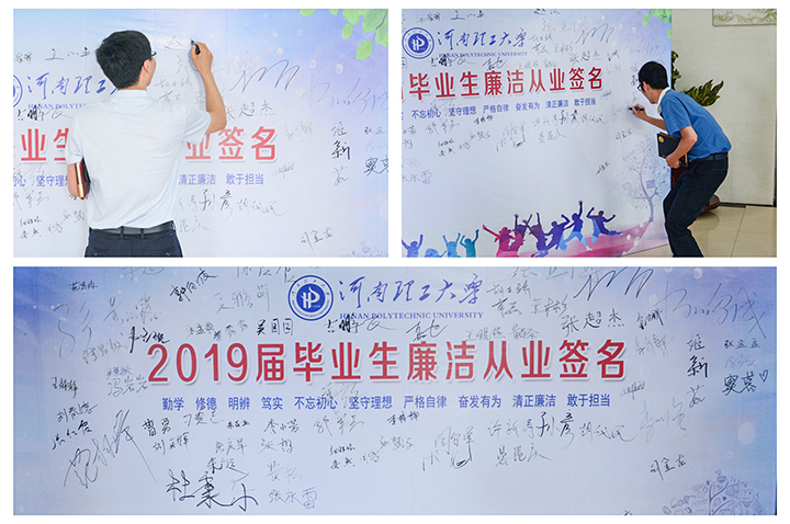 与会师生在廉洁从业签名墙上签字留念