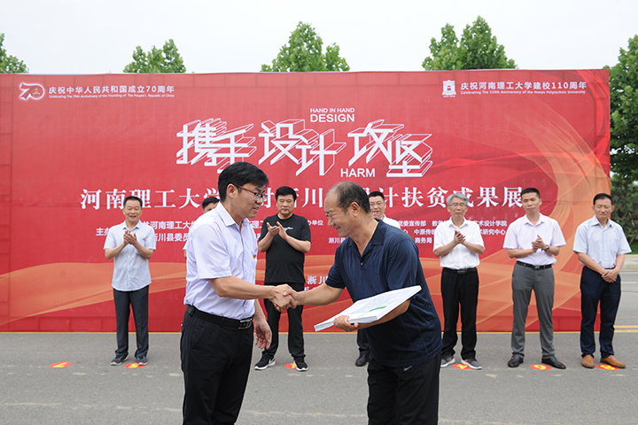 开幕式上,赵同谦总结了校地结对帮扶脱贫攻坚工作成果,对淅川县扎实开展“短中长”生态可持续脱贫模式取得良好成效表示祝贺。赵同谦强调,学校高度重视结对帮扶脱贫攻坚工作,始终把结对帮扶作为一项重要政治任务来抓。为助力淅川美丽乡村建设,建艺学院发挥师资优势,顺势而为,挑选精兵强将,奔赴淅川开展设计扶贫工作。今后,学校还将一如既往做好结对帮扶工作,助力淅川打赢打好脱贫攻坚战。卢捍卫对我校师生富有特色的设计表示充分肯定,对我校的大力帮扶表示衷心感谢。他要求各相关部门要进一步加强与我校的联系沟通、对接合作,助力脱贫攻坚顺利开展。王伟超代表学校向淅川相关部门交接了设计成果。
