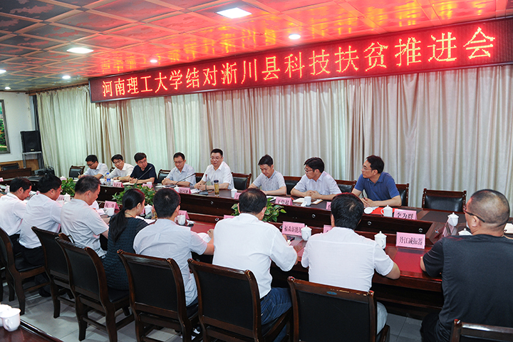 推进会上,赵同谦强调,校地结对帮扶以来,各项任务正有力推进,此次交流对接,目的是促进科技帮扶向纵深推进。他希望淅川县相关部门把产业企业的科技需求梳理登记好,我校将有针对性地进行科技帮扶,真正把需求落到实处。学校将组织师生深入企业,在帮助解决企业实际问题的同时,让学生得到锻炼培养,将引导博士、硕士等高层次人才来淅川,支持淅川,为淅川发展做贡献。校地双方要探索合作共赢、可持续科技扶贫之路,扎扎实实让科技助力淅川发展。陶华介绍了淅川县县情及脱贫攻坚工作情况,并向我校给予淅川脱贫攻坚大量帮助表示衷心感谢。淅川县科工局汇报了企业需求情况,并向我校递交企业需求文件。淅川县部分企业代表进行了交流发言。