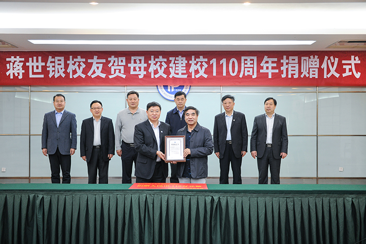 5月8日上午,学校在明德楼会议室举行“蒋世银校友贺母校建校110周年捐赠仪式”,校长杨小林,79级校友蒋世银,副校长赵俊伟出席仪式,校教育发展基金会理事长杨韶昆,校办、校友办、校庆办负责人参加仪式。仪式由校友与社会合作办公室主任邵强主持。