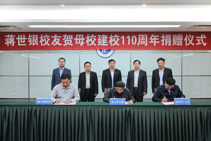 赵俊伟和杨韶昆分别代表学校、校教育发展基金会与蒋世银签署捐赠协议,杨小林代表学校接受110万元捐赠,并向蒋世银颁发捐赠证书。
