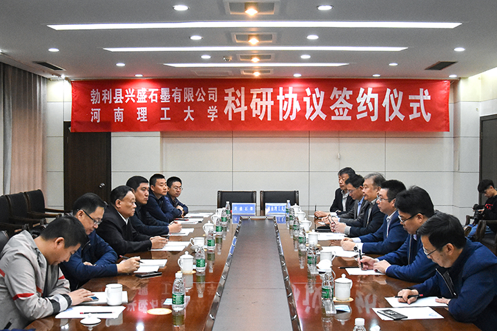 纪振华介绍了勃利县和兴盛石墨烯有限公司的基本情况,并对此次合作表达了美好的期望。勃利县隶属黑龙江省七台河市,矿产资源丰富,石墨储量达4.7亿吨。勃利县兴盛石墨有限责任公司主要经营石墨开发及洗、选、深加工,注重科技研发和技术储备,在石墨矿开采和洗选方面积累了一定经验,这次与河南理工大学在石墨分选深精加工及固废资源化利用成套技术方面进行合作研究,势必会提高公司的生产水平和产品质量,对公司的长远发展具有重要的意义。