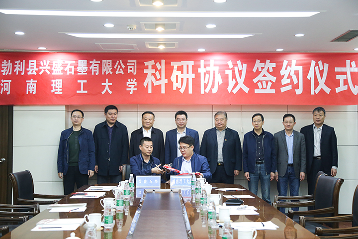 赵同谦代表学校对纪振华一行表示热烈欢迎,感谢兴盛石墨公司对河南理工大学的信任,并介绍了河南理工大学的基本情况及在矿物加工领域的特色。他指出,河南理工大学作为传统地矿类高校,在矿产资源的开采和加工方面具有传统优势,矿物加工工程学科是国家级特色专业,依托矿业工程学科博士后流动站,拥有硕士、博士授予权,建有“煤炭绿色转化”河南省重点实验室等省级平台,实验条件较为完备,在石墨矿的物理分选与高效提纯,石墨精矿的深加工与高附加值利用等具有一定的技术优势。希望通过此次合作能够发挥我校在相关领域的科研优势,助推企业和当地经济发展。