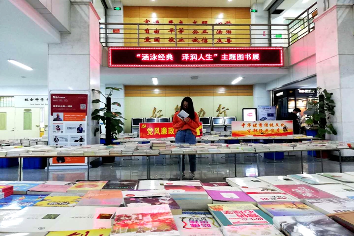 感悟文化内涵,彰显经典魅力。为迎接4·23世界读书日,4月17至21日,图书馆联合焦作市新华书店在南校区图书馆二楼大厅举办了以“涵泳经典,泽润人生"为主题的图书展览活动。