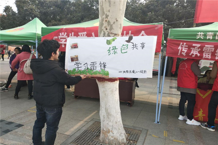 3月5日,大学生爱心捐助协会在春秋大道开展了“学习雷锋,绿色共享”爱心募捐活动。