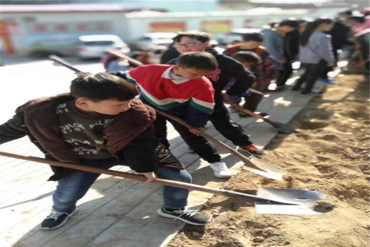 活动伊始,建艺学院的青年志愿者们根据现场情况,合理搭配人员,按小组分配工具和树苗,和小尚小学师生们共同植树。就这样,三人成组、五人成团,有的扶直树苗,有的培土压土,大家挥动铁锹、踩实泥土,干劲十足,每道工序都认真细致、一丝不苟。经过两个多小时的辛勤劳动,大家共植树200余棵,播种花籽40余包。