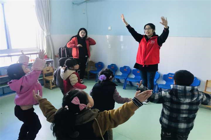 焦作市残疾人康复中心目前有近40名听障儿童,年龄大多在4-6岁,均已配有辅助听力的仪器,但听力还非常有待加强,需接受听力恢复训练来达到接近正常人的效果。活动前期,志愿者们经过与康复中心的刘暖暖老师交流后,对现有残疾儿童困难状况有了初步的了解。在刘老师的帮助下,志愿者们慢慢地与孩子们熟悉起来。随后志愿者们开始了正式的辅助训练。首先给孩子们听了一些生活中的车辆、乐器的声音,让他们进行了辨认,训练他们的听觉能力和记忆能力。志愿者们还将声音转换成汉语拼音,教孩子们如何发音,在他们表达过程中鼓励他们发音,并进行适当的矫正。拼音教学完成后回到之前的声音训练中,志愿者指定一种声音让孩子们进行模仿,调动他们的积极性,训练他们发音的准确性。之后志愿者们又带领孩子们进行户外锻炼,教孩子们一些行健运动和简单的健美操,帮助他们活跃情绪,更好地打开心门。教孩子们使用医用急救包,培养他们的安全自救意识。最后志愿者们给孩子们表演了歌曲、舞蹈和健美操等文艺节目。