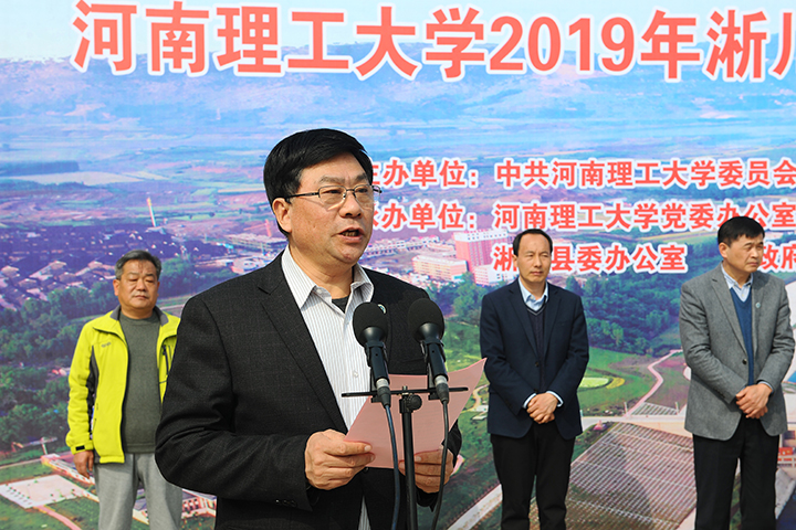 安士伟在交流推进会的致辞中指出,开展“校地结对帮扶”精准扶贫行动,是省委、省政府着眼于全省脱贫攻坚大局作出的一项重要工作安排,为我省全面打赢脱贫攻坚战提供了重要支撑。校党委和行政高度重视结对帮扶工作,始终将其作为重要政治任务扛在肩上、落实在行动中。帮扶工作启动以来,学校成立了脱贫攻坚帮扶领导小组,制定了结对帮扶工作方案,精心选派结对帮扶淅川挂职干部和驻村“第一团支书”,划拨结对帮扶专项经费,定期听取结对帮扶工作汇报,多次召开党委常委会议专题研究结对帮扶工作。经过双方共同努力,目前在智力、科技、培训、人才、产销帮扶等5个方面开局良好,取得了理想成绩。推介会及推进会的举办,标志着双方结对帮扶工作持续深化、步步深入,学校将一如继往的重视和推动脱贫攻坚、校地结对帮扶工作,积极采取有效措施,巩固提高已经取得的帮扶成效,努力构建帮扶长效机制,实现双方合作共赢,全力支持淅川经济社会发展和脱贫攻坚工作。希望双方优势互补,资源共享,相互促进,携手并进,共同为打赢打好脱贫攻坚战、让中原更加出彩作出积极贡献。