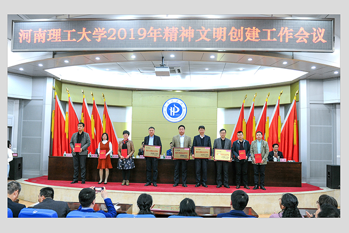 副校长赵俊伟宣读了校党委、校行政《关于表彰2018年度精神文明建设先进单位和先进个人的决定》。在欢快的乐曲声中,与会校领导为受表彰的精神文明建设先进单位和精神文明建设先进个人代表颁发了奖牌和荣誉证书。