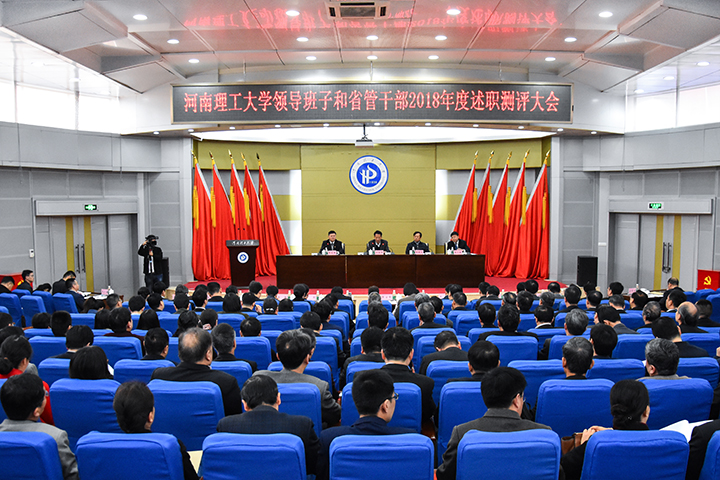 根据省委统一安排部署,省委第二考核组一行9人在组长、河南科技大学原党委书记孙金锋,副组长、省委组织部青年干部处调研员王晓冰的带领下莅临学校,对校级领导班子和省管干部2018年度工作进行综合考核。3月29日上午,学校领导班子和省管干部2018年度述职测评大会在南校区力行楼学术报告厅举行。校领导、校党委委员、纪委委员,中层正职,省级以上党代表、人大代表、政协委员,教师和学生代表等130余人参加会议。会议由校党委书记邹友峰主持。