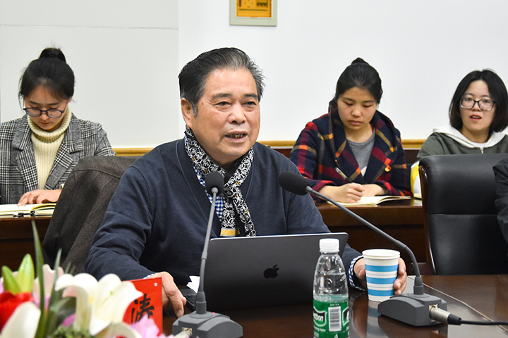 参加学校思想政治理论课教师座谈会教师代表、清华大学教授吴潜涛介绍座谈会情况