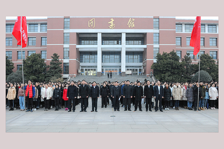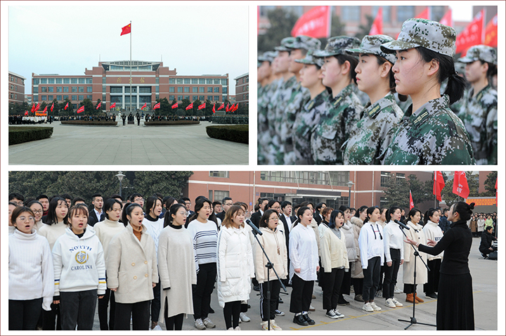 全体中层干部、专兼职辅导员和学生代表、音乐学院合唱团和2018级国旗护卫队等3000余人参加了仪式。