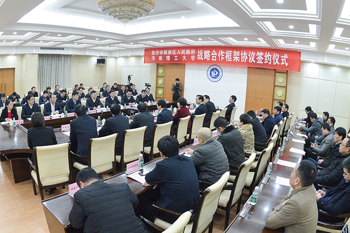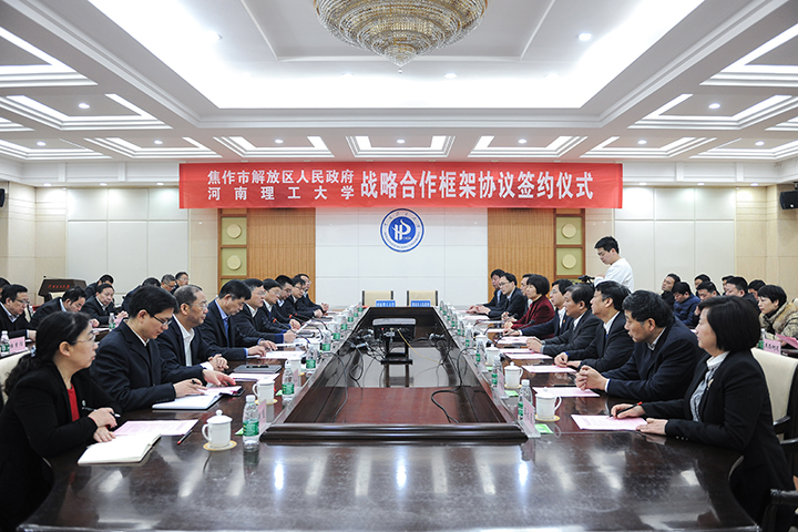 2月21日,学校与焦作市解放区人民政府战略合作框架协议签字仪式在力行楼一楼会议室举行。焦作市委常委、副市长汪习武,校党委书记邹友峰、校长杨小林,副校长赵俊伟、赵同谦,校工会主席翟耀南,焦作市解放区委书记吴军,区委副书记、区长赵海燕等相关领导出席,学校党办、校办、宣传部、教务处、发规处、科技处、招生就业处、后勤处(集团)、泰科公司、档案馆等部门和相关学院,解放区各街道、园区书记,区科技局、发改委、工信委、民政局、文体局、财政局、教育局、商务局、卫计委、人社局等单位负责人参加了签约仪式。仪式由赵俊伟主持。