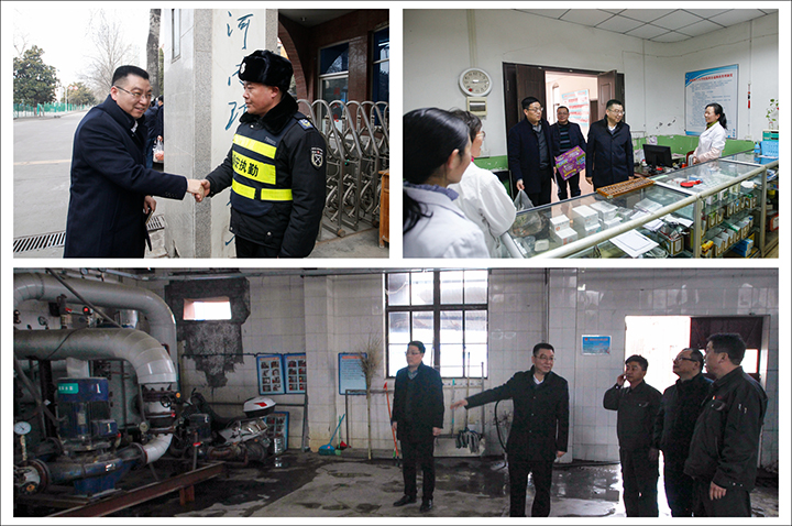 杨小林、赵同谦一行分别走访慰问了南北校区保卫处、后勤集团、校医院等部门的在岗职工,每到一处,校领导都与坚守岗位的职工亲切握手,把温暖的慰问品送到值班人员手中,并向他们及其家人致以新春的祝福。校园安全、后勤保障等工作与全校师生的工作生活关系密切,校领导在详细询问和了解全校安全保障、供暖、通讯、维修、医疗就诊等情况之后,代表学校和广大师生感谢他们节日期间牺牲休息时间,奋战工作岗位,为确保师生度过一个安全、稳定、祥和的春节所付出的辛苦。同时,校领导嘱咐相关部门负责人要关心坚守岗位一线职工的生活,在保证值守工作的前提下,科学安排轮岗轮休,尽可能让大家与家人团聚,共享节日欢乐。在岗值班的工作人员感谢学校领导的关怀,并表示一定不辜负领导期望,坚守岗位,尽职尽责,做好春节期间的各项服务保障工作。